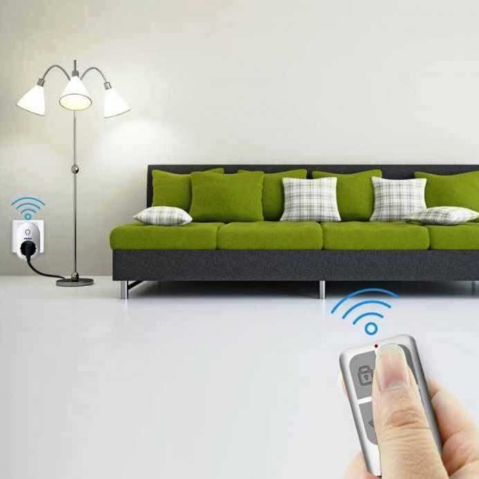 SMART-розетки с радиоуправлением идут в комплекте с пультом, работающем от батареек. Сама же SMART-розетка питается от электросети, и выпускается только в наружном исполнении. Дальность действия ПДУ варьируется в зависимости от модели девайса и может достигать 70 метров. Усовершенствованные модели могут управлять одновременно 8-мью розеточными блоками, для каждого из которых на ПДУ предусмотрена своя пара кнопок ON/OFF.