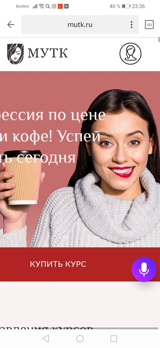 Заинтересовалась я темой массажа уже давно. Смотрела всевозможные ролики на ютубе, читала метод. пособия и т.д Вообщем запросов в поисковике на эту тему была тьма и меня конечно замучила контекстная реклама. Миллионы курсов предлагают постоянно, но... Самой навящевой была она... Реклама MUTK. ru. Я всегда игнорила контекстную рекламу. Просто мне всякие онлайн курсы не интересны. Но тут бросилась вызывающая цена 99 р. Зашла на сайт вроде подборка не плохая, да и что такое 99 р, для даже самой посредственной информации.