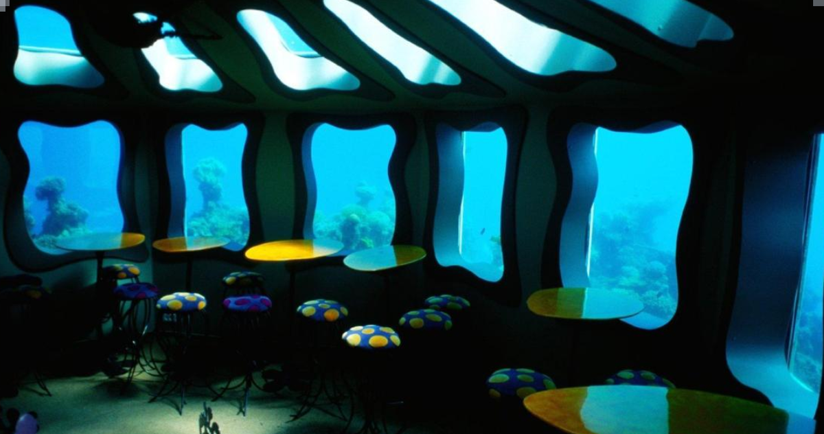 Для тех, кто хочет не просто полакомиться кулинарными изысками, но и повысить уровень адреналина, предлагается отправиться под воду. Нет, намокнуть посетителю чудо-ресторана здесь не дадут. Но пообедать в компании морских