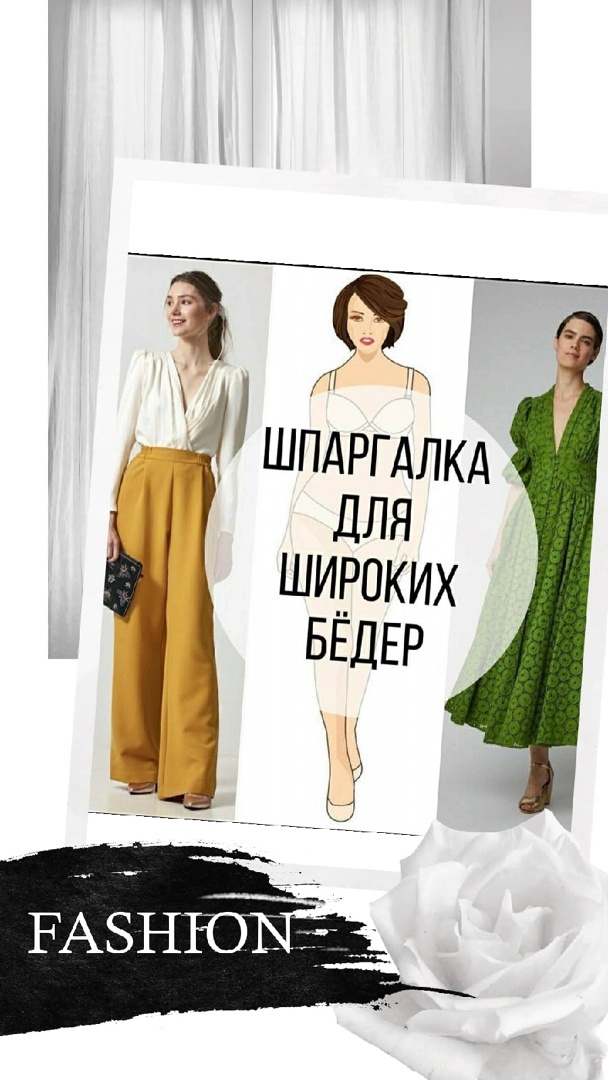 При любой коррекции фигуры одна из главных деталей -это смещение акцентов. В данном случае акценты в верхнюю зону(подчеркиваем талию) выбираем объёмные рукава, открываем плечи , используем аксессуары.