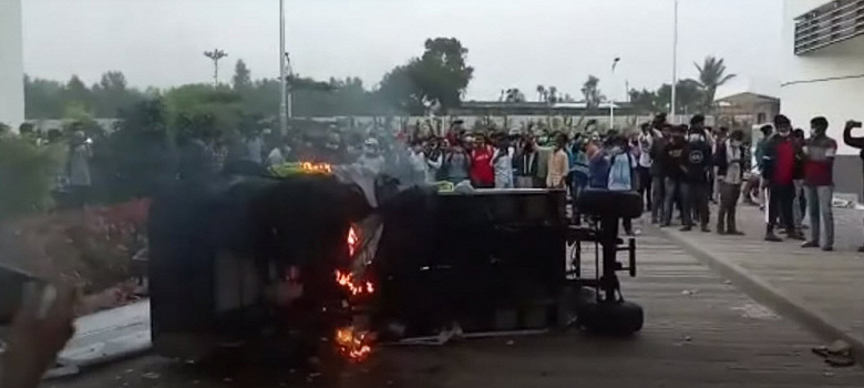 Сборщики iPhone громят завод Wistron в Индии и жгут автомобили. Они требуют свою зарплату.