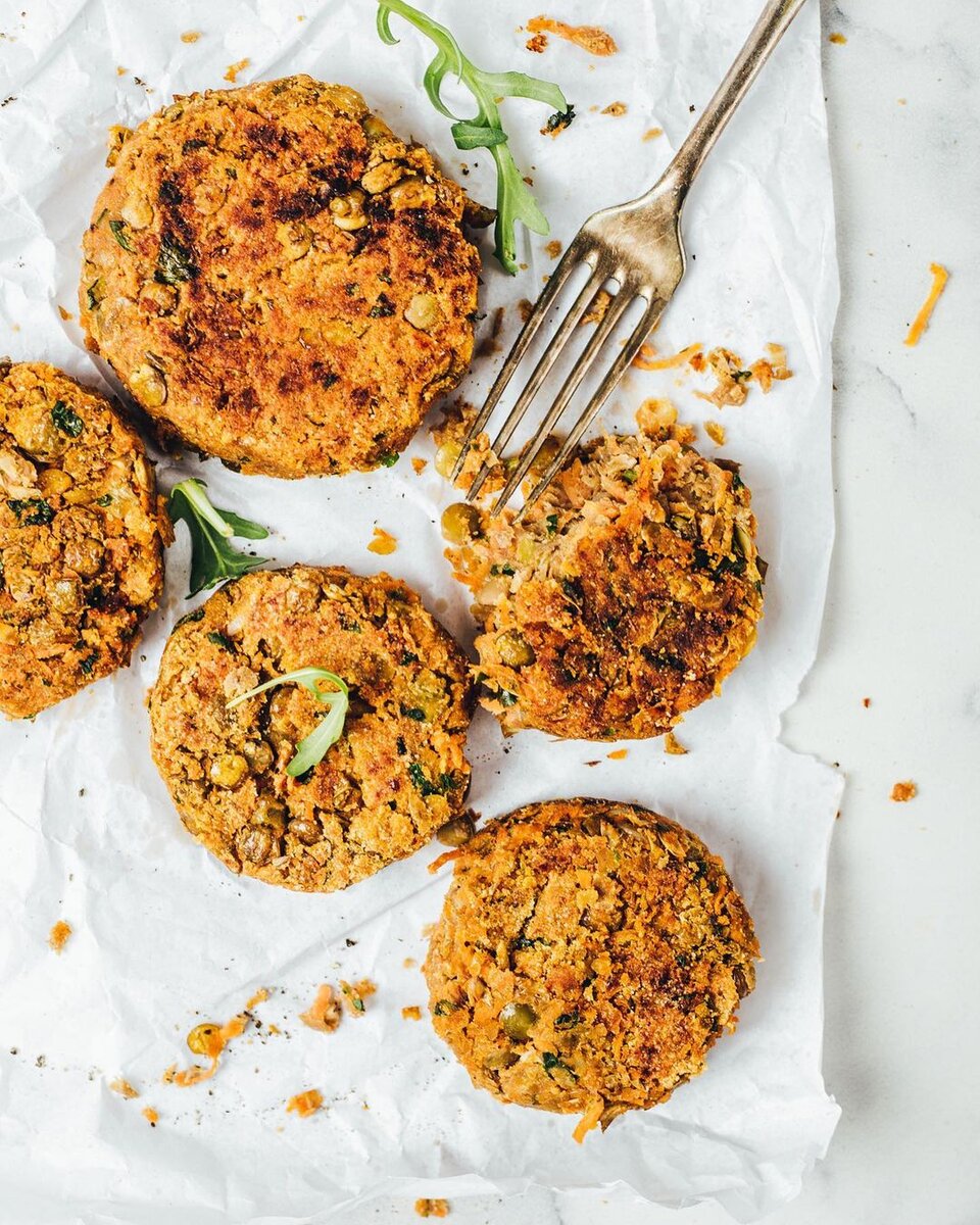 В каждый из основных приёмов пищи я стараюсь включать достаточно белка. Тогда сил и насыщения хватает действительно надолго. Три-четыре раза в неделю я ем бобовые. Это могут быть ростки маша, чечевичный суп, красная фасоль в овощном супе, нут в салате или такие простые котлеты из зелёной чечевицы. Куркума, красный и чёрный перец делают бобовые вкуснее и легче для усвоения, поэтому эти специи я