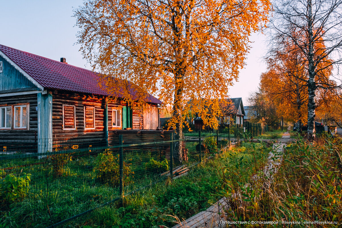 И на рассвете перед полетом непреодолимая сила разбудила меня и потащила гулять по поселку. И я пошла :) Мимо желтых берез, покосившихся заборов и по деревянному тротуару.