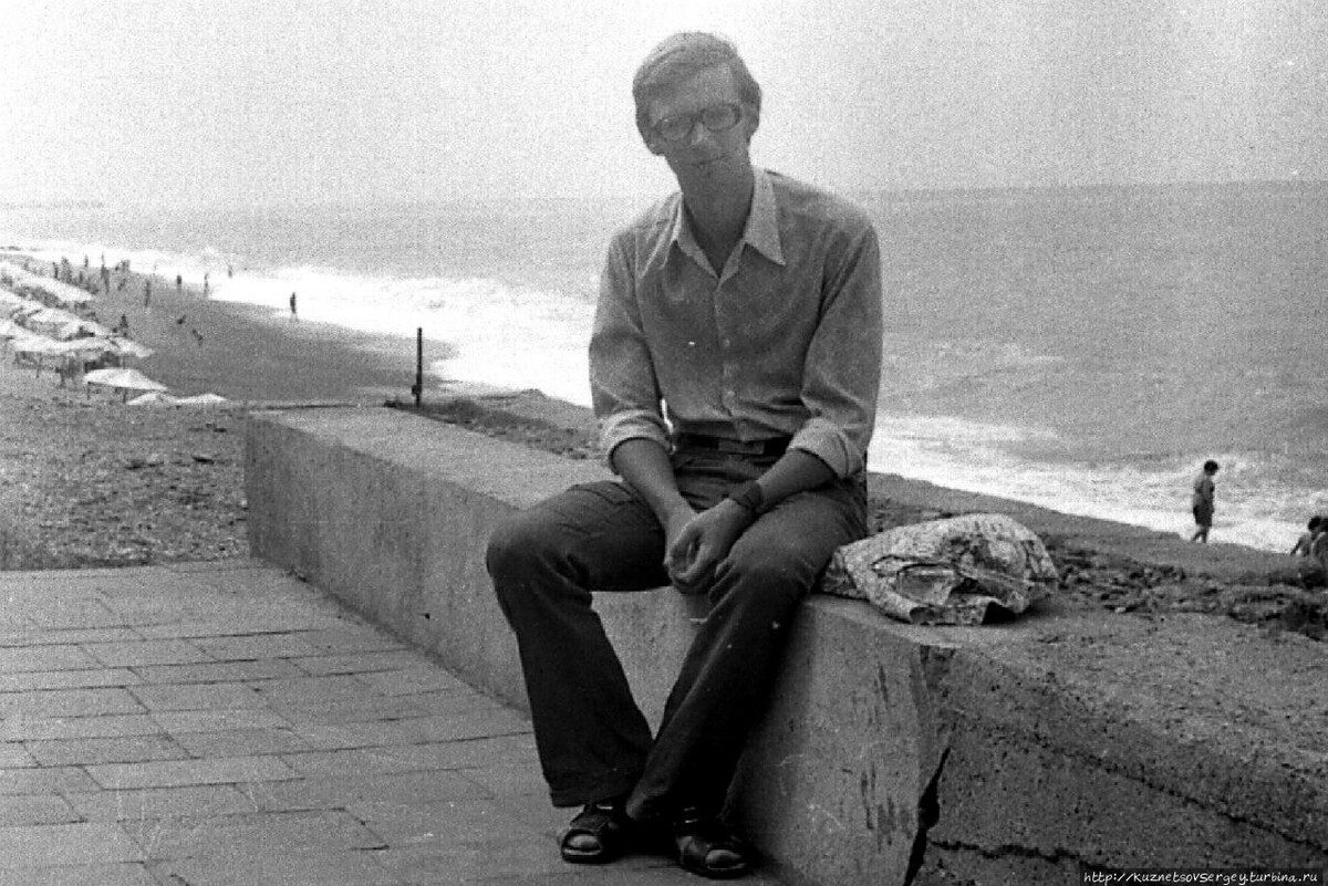 К лету 1975-го года Крым и Кавказ мною были уже основательно освоены. В самом деле, в Крыму я уже к тому времени побывал четыре раза, а на Кавказе – пять раз! Но, ни разу не был в Абхазии! А песня про море в Гаграх была очень популярна в нашей среде…Поэтому в июле перед военными сборами мы решили поехать в Гагру «русский Монте-Карло» вместе с моими друзьями Юрой и Колей с его супругой и сыном. Поехали, как обычно, «дикарем». Коля с семьей и мы с Юрой сняли себе по комнате на частном секторе (это могли себе позволить советские студенты). Гагра произвела на меня хорошее впечатление. Она мне показалась «более южной», чем Ялта и Сочи. В самом деле, набережная с огромными (как мне тогда показалось) пальмами, более влажные субтропики с глубокими субтропическими запахами, более теплое море… Вот я на набережной на фоне прекрасного галечного пляжа