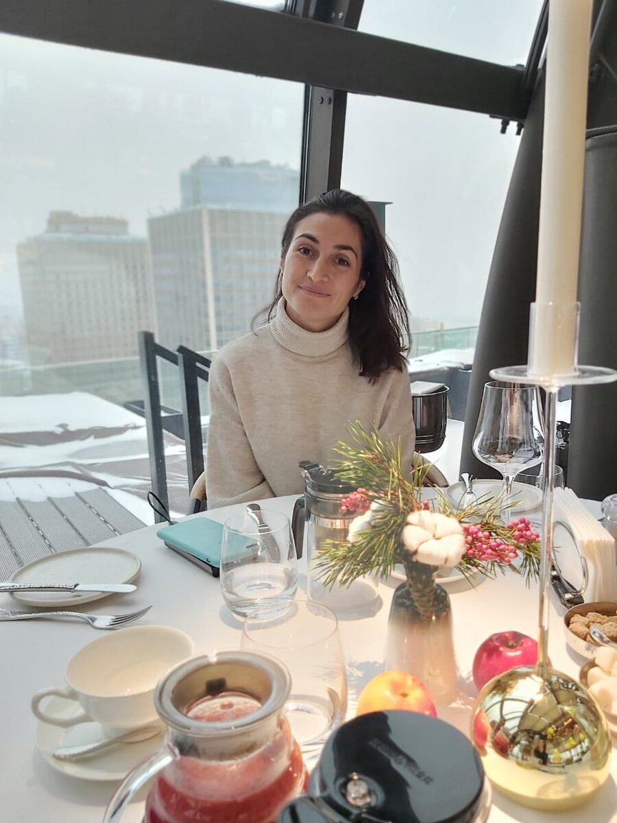 Панорамный ресторан русской кухни на шестнадцатом этаже «Смоленского пассажа». Отсюда открывается вид на исторический центр Москвы. Средний чек : 2 500 руб - 3 000 руб Кухня: Русской авторской кухни,подходит для вегетарианцев, Для веганов, Безглютеновые блюда Шеф повар: Владимир Мухин Адрес: пл. Смоленская 3 Метро Смоленская Время работы: Пн–Вс: 12:00 —23:00 Забронировали заранее в 13:00 нам сказали до 17:30 Входная группа, запахи, свет, музыка, дресс код, туалет в общем все детали продуманы, думаю нам повезло, попался хороший официант, все моменты в обслуживании учёл, были пару моментов в работе, но в общем понравилось. Нам принесли три раза комплименты от заведения в разные промежутки времени: 1.Фехуа с козьим сыром; 2.Сарбет из абхазкого лимона; 3.Конфета бон бон из облепихи( необычно сделано и вкус приятный).