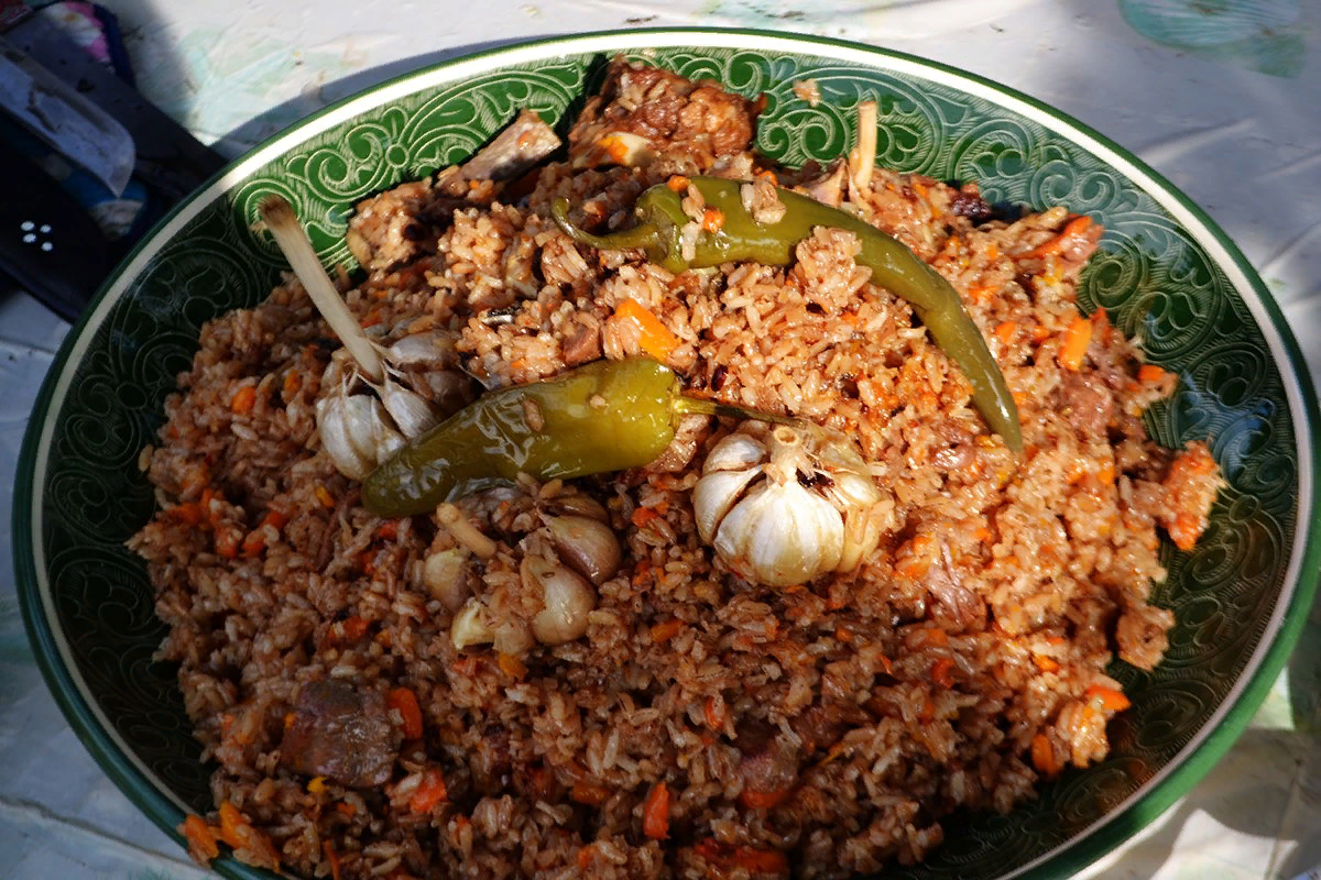 14. Самое время отправить обратно в казан чеснок с перцем, накрыть крышкой и на медленном огне томить еще около получаса. Вот и все, традиционный ферганский плов в домашних условиях готов.