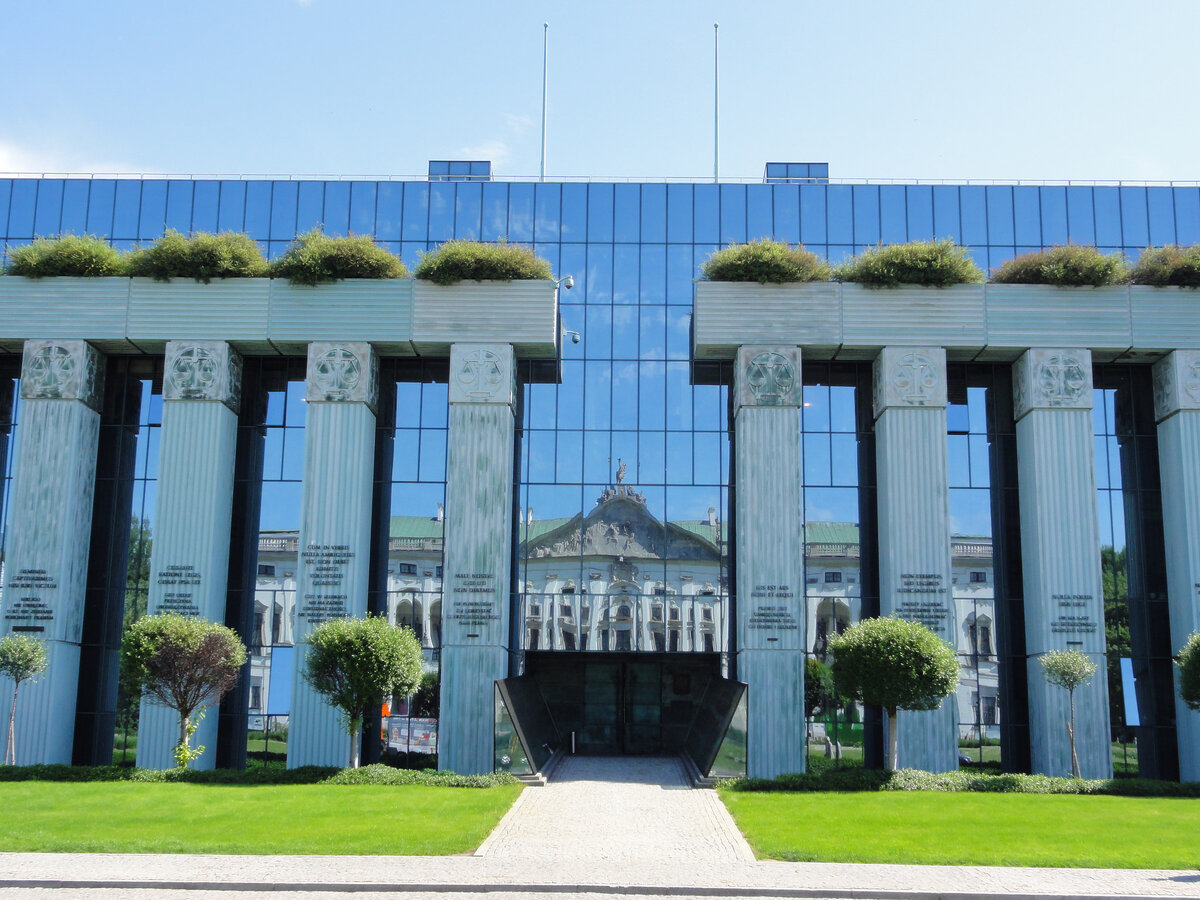 На фото - здание Верховного суда Польши, построенное в конце 20 века. Его архитекторы - Бадовский и Будзинский настояли, чтобы стены здания были зеркальные. Вы можете подойти к ним и в отражении увидеть весь горизонт улицы, расположенной