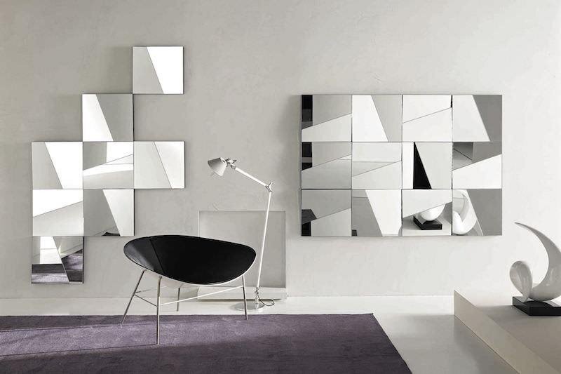 - зеркальные панно. Обычно они занимают всю или большую часть стены. Такие зеркала способны увеличить комнату вдвое. Чтобы создать эффектную игру света, для панно могут использоваться зеркальные элементы с фацетами;