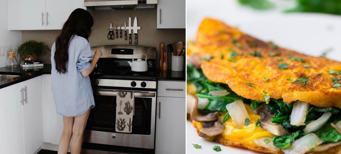 Добавьте любую начинку (лук, грибы, шпинат, веганский сыр из кабачков и т. д.) на одну половину омлета - http://swjournal.ru/news/omlet-2/