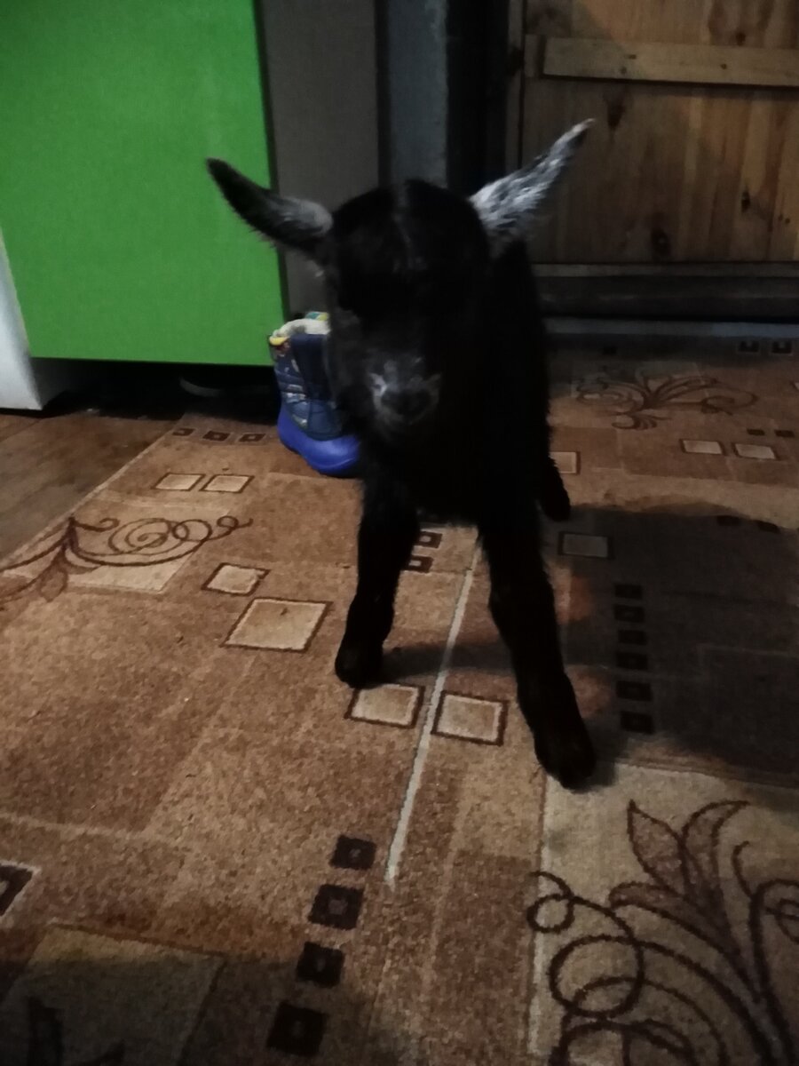 И снова пополнение! Пошла вечером на двор, захожу, а там козленок! Батюшки, вот так сюрприз! Как, когда? Два часа назад ходила за яйцами, всё было тихо, спокойно, рожать никто не собирался. А тут стоит и смотрит на меня, весь такой деловой. Чистенький, сухой, и маму пососать успел. Подкинули тебя что ли? 😆