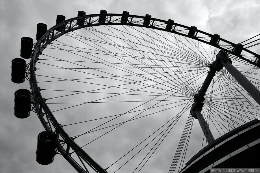 Даже несмотря на то, что колесо обозрения Singapore Flyer (Парящий Сингапур) является самым большим в мире, аж целых 165 метров (!), я довольно скептически поначалу воспринял идею посетить его. Наверное причиной этому была скверная погода во второй день нашего пребывания в городе, но на следующий день показалось солнышко и я решил, что наверное стоит сюда заглянуть.