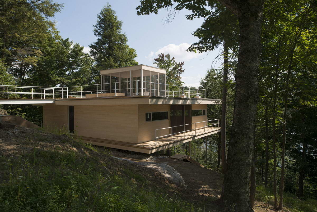 Климат в Канаде, в целом, похож на наш и там тоже есть "дачные дома". Но это несколько другое. Канада страна лесная и поэтому для многих дом для загородного отдыха — это прежде всего лесной дом, часто расположенный на берегу озера или реки. Понятие «дача» в Канаде отличается от нашего, там это скорее второй дом в семье, предназначенный для проживания — краткосрочного, временного или сезонного — на природе. Это может быть лесной или прибрежный дом, дом в степи или в горах. Посмотрите ещё три замечательных дома для загородного отдыха в Канаде. Минималистский деревянный дом на склоне Идея проекта состояла в том, чтобы создать плато, где можно было бы наслаждаться природными видами вокруг и вдали. Эта большая терраса захватывает солнце, а также имеет вид на окружающий лес и расположенное в 60 метрах ниже озеро. Простая конструкция расположена на крутом склоне, имеет квадратный план и тонкий металлический каркас. В доме один этаж и стеклянный павильон на плоской деревянной крыше-террасе. Ст