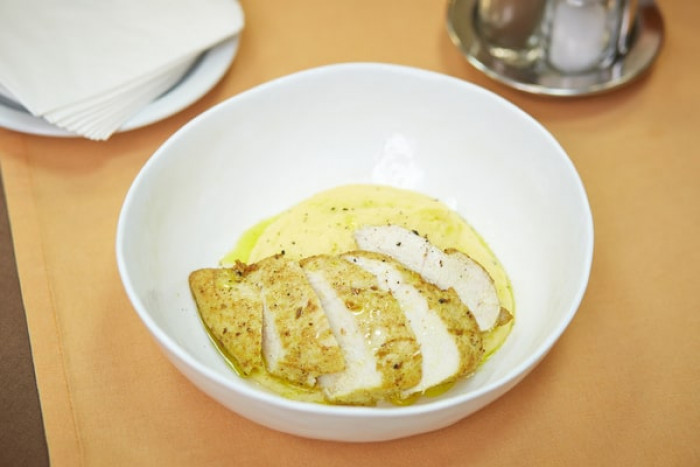 Ингредиенты Куриное филе «Петелинка» — 1 кг Полента — 250 г Пармезан — 125 г Чеснок — 1 шт. Сливочное масло — 100 г Оливковое масло — по вкусу Карри — по вкусу Кумин — по вкусу Кардамон — по вкусу Паприка — по вкусу Рецепт приготовления 1. Прогреть оливковое масло, добавить специи, измельченный чеснок. 2. Куриное филе ополоснуть, порезать тоненькими кусочками, выложить на бумажное полотенце, обсушить. Положить курицу в глубокую тару, залить пряным маринадом, отложить в сторонку на 30 минут. 3. В небольшую кастрюлю налить воду, посолить, добавить две ложки оливкового масла. Довести до кипения. Засыпать в кипящую воду крупу, после повторного закипания варить, время от времени помешивая, 10 минут. 4. Добавить в готовую кашу тертый пармезан и сливочное масло, тщательно перемешать. Снять с плиты, но держать в тепле. 5. Выложить замаринованное филе на сковороду, обжарить с двух сторон до румянца. Переложить мясо на противень, залить маринадом. Отправить в прогретую до 200 градусов духовку на