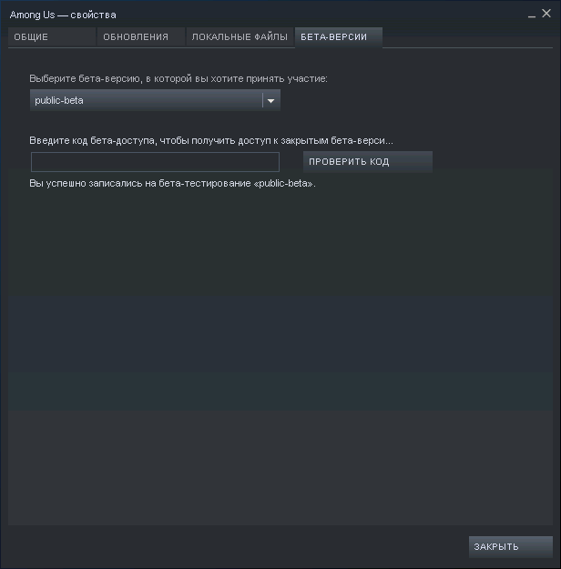 - Как только вы это сделаете, Steam загрузит бета-версию Among Us, и вы сможете играть в игру только с другими игроками, использующими бета-канал. Таким образом, ваш пул игроков может быть намного меньше, но вы сможете принять участие в фазе тестирования новых функций, запланированных для Among Us. Вы также должны иметь в виду, что эта версия обычно не получает список исправлений, поэтому сообщество должно самостоятельно выяснить, какие изменения вносятся в обновлениях.