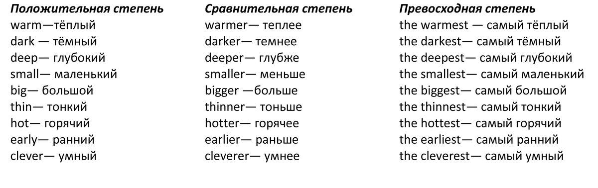 Степени сравнения односложных и некоторых двусложных прилагательных образуются путём добавления суффиксов –er (в сравнительной степени) и -est (в превосходной степени) к основе.