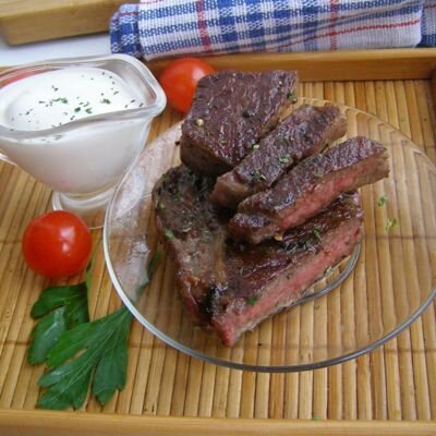 Согласно негласной статистике, которую ведут шеф-повара именитых ресторанов, стейк-рибай любители вкусного мяса заказывают чаще других видов стейка. Рибай-стейки готовятся из лопаточной части туши, в этом месте много жировых прослоек, поэтому мясо прожаривают в два подхода. Сначала до корочки, а затем до готовности в натуральном виде или в соусе, как в нашем рецепте. Но в любом случае стейк-рибай