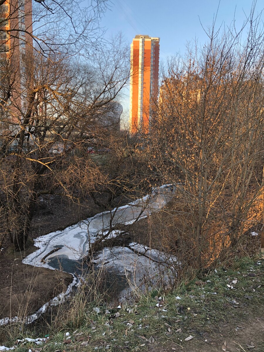 Банька — одна из двух рек, протекающих по нашему микрорайону. Хотя нет, правильнее было бы говорить, что это наш микрорайон — Павшинская пойма — построен на месте слияния Баньки и Москвы-реки. Чудесное название — Банька. Вот только помыться в ней, по крайней мере в устье, не получится — мелко. Да и не захочется — грязно. Летом по ней то и дело втекают в Москву-реку огромные масляные пятна (не из Красногорского ли завода им. Зверева, по территории которого, частично свободно, частично в трубе, протекает Банька?). А от загнивающего в воде мусора местами ощутимо разит. Впрочем, летом Баньку у нас практически не видно — её шатром накрывает разросшаяся растительность. Зато зимой — вот такая красота: тонкая извилистая белая ледяная лента между невысокими, но крутыми берегами, густо покрытыми облетевшим кустарником и большими старыми деревьями. В справочниках пишут, мол, в своей нижней части Банька туристического значения не имеет — застроена. А вот в верховьях — от болот у деревни Большаково