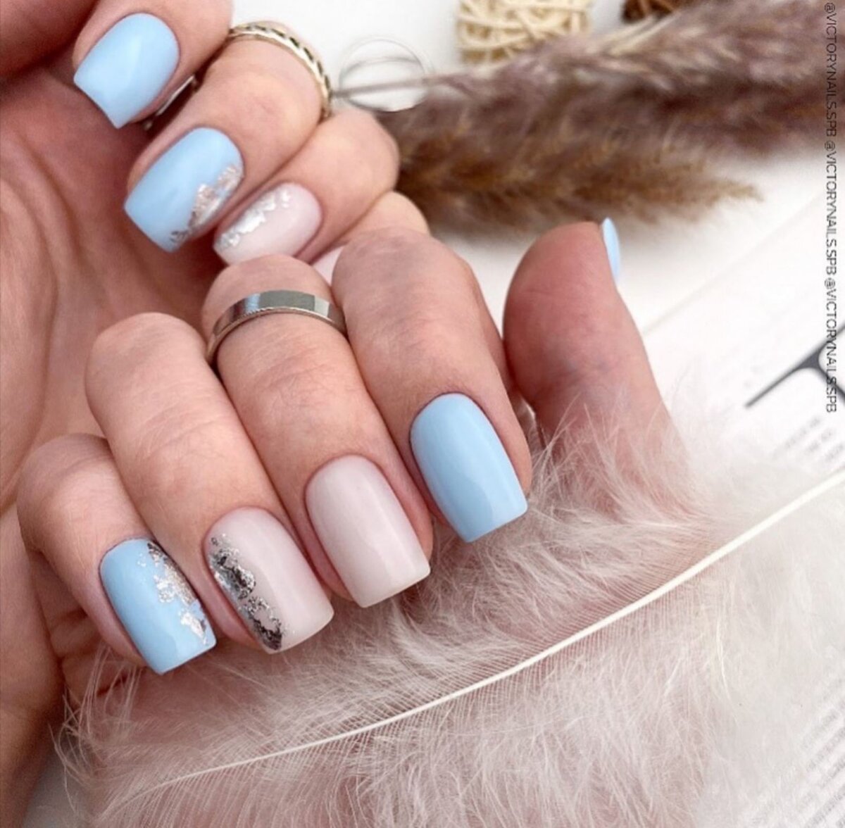 оттенкам серого, голубого, бежевого, а также серебристый, белый и пастельные цвета - все они спокойные и светлые, и легко сочетаются между собой. Но не стоит ограничиваться только этими цветовыми решениями , не бойтесь экспериментировать и с другими более яркими и тёмными оттенками лака.