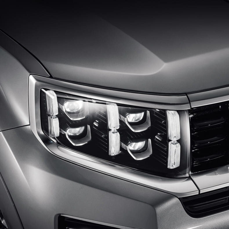 Брутальная внешность KIA Mohave с первого взгляда внушает доверие. Образ, создаваемый гармоничными линиями кузовных панелей и выразительными светодиодными фарами, можно эффектно дополнить 20-дюймовыми колесами на оригинальных легкосплавных дисках.