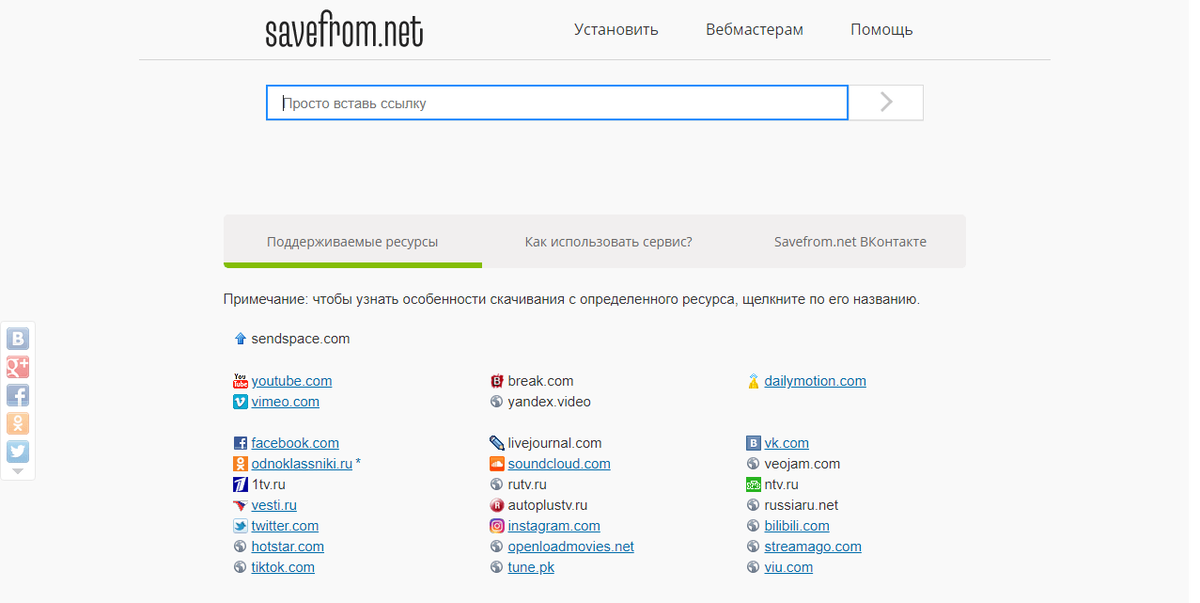 В таком случае хорошим решением станет использование специальных сервисов для загрузки записей с популярных хостингов – от YouTube до ВКонтакте. Один из типичных примеров таких сервисов – Savefrom.net, доступный как в виде онлайн-страницы, так и в виде загружаемого дополнения.