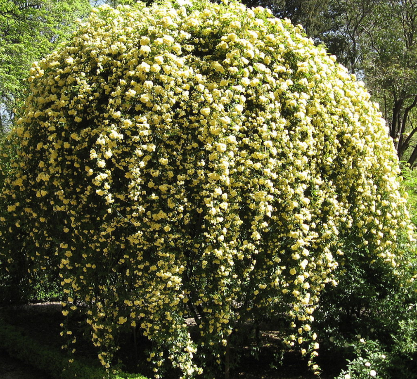 Как мне понравилось это растение. Увидела фото в журнале - роза Бэнкс . Роза, покоряющая такие высоты - 10-15 метров. Стало интересно. Это видовая (дикая) китайская роза. Есть два вида Rosa banksiae lutea (желтая) названа в честь Доротеи Бэнкс и альба (белая).