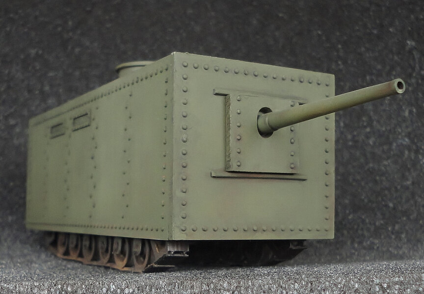 Разработан в 1911-1915 годах, инженером-кораблестроителем В.Д.Менделеевым (сын знаменитого химика Д.И.Менделеева), первый в мире проект сверхтяжёлого танка. Разрабатывался он практически 5 лет, притом только в свободное время конструктора, также в ходе создания применялся опыт кораблестроения. Корпус имел коробчатую форму и длину: 10 м, высоту: 2.8 метра. Броня из цельных стальных плит составляла 150 мм лоб, 100 мм борта с кормой. Броня была противоснарядной и должна была выдерживать попадания снарядов 152 мм орудий. На вооружение, танк имел 120 мм морскую пушку Канэ и пулемёт Максим 7.62 мм в цилиндрической башенке на крыше корпуса. Экипаж 8 человек, а двигатель использовался карбюраторный на 250 л.с от подводной лодки. Агрегат больше походил на САУ, чем на танк. Вес машины был неимоверный: 173.2 тонны (знаменитый Маус весил от 190 до 200 тонн). Стоит отметить что “танк” был хорошо проработан, в нем учитывалось множество мелочей, но он так и остался, лишь на бумаге.