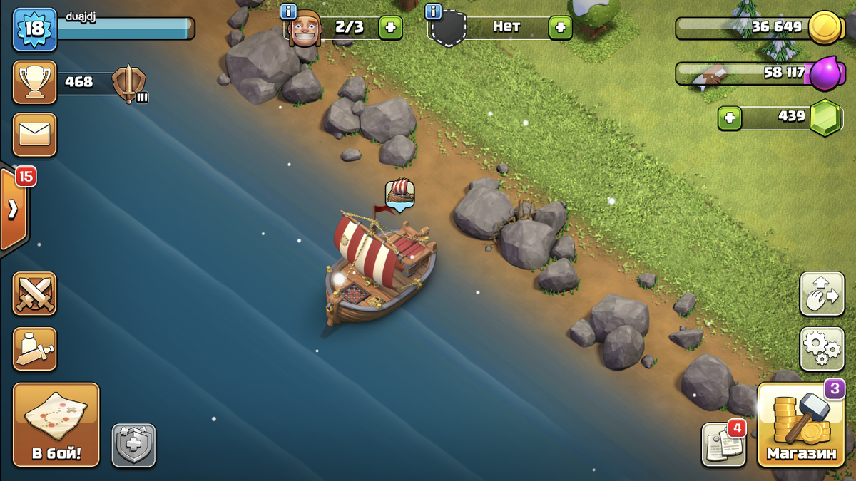 Деревня строителя представляет собой остров, на который ты сможешь приплыть после улучшения ратуши до 4 уровня.
