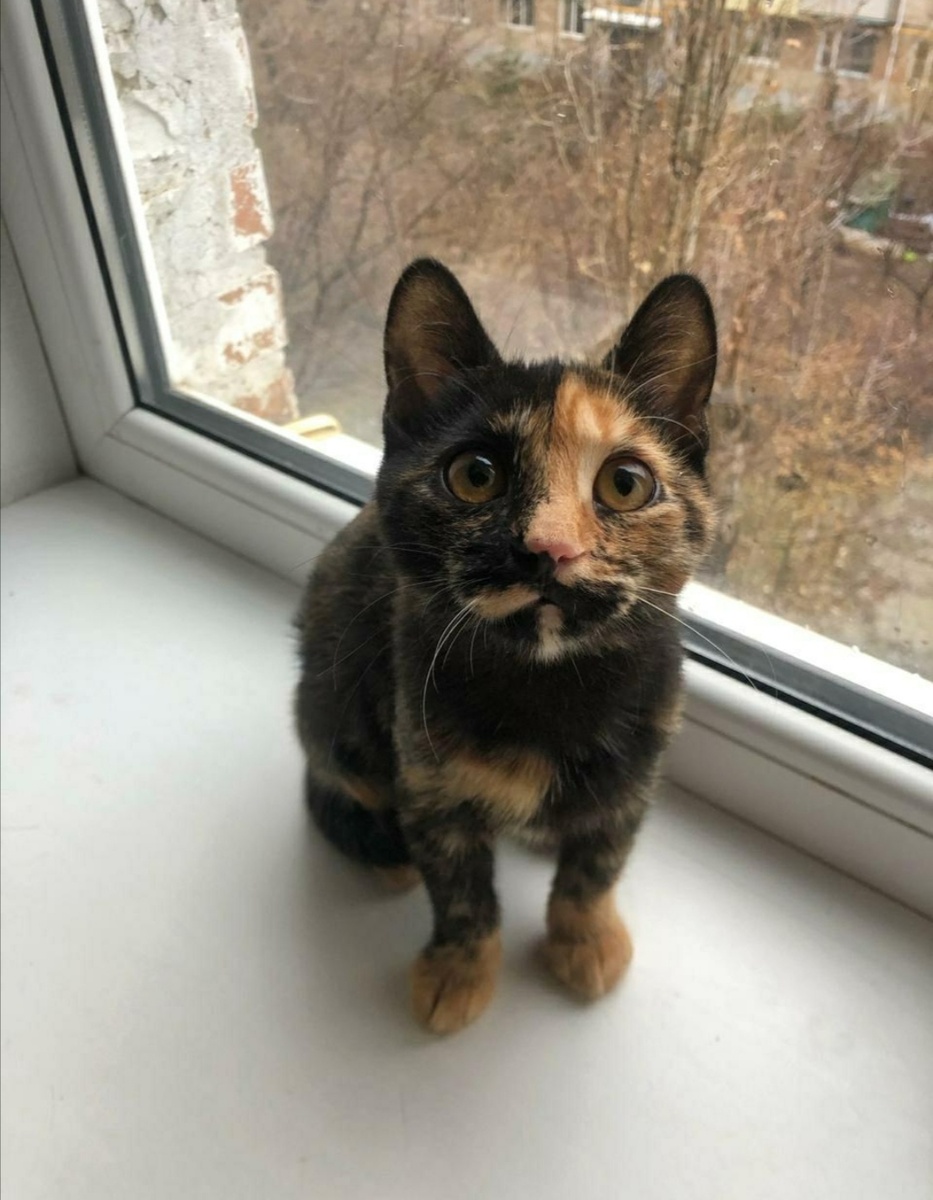 А тут однажды я шла домой, и за мной увязалась молоденькая, трехцветная кошечка.