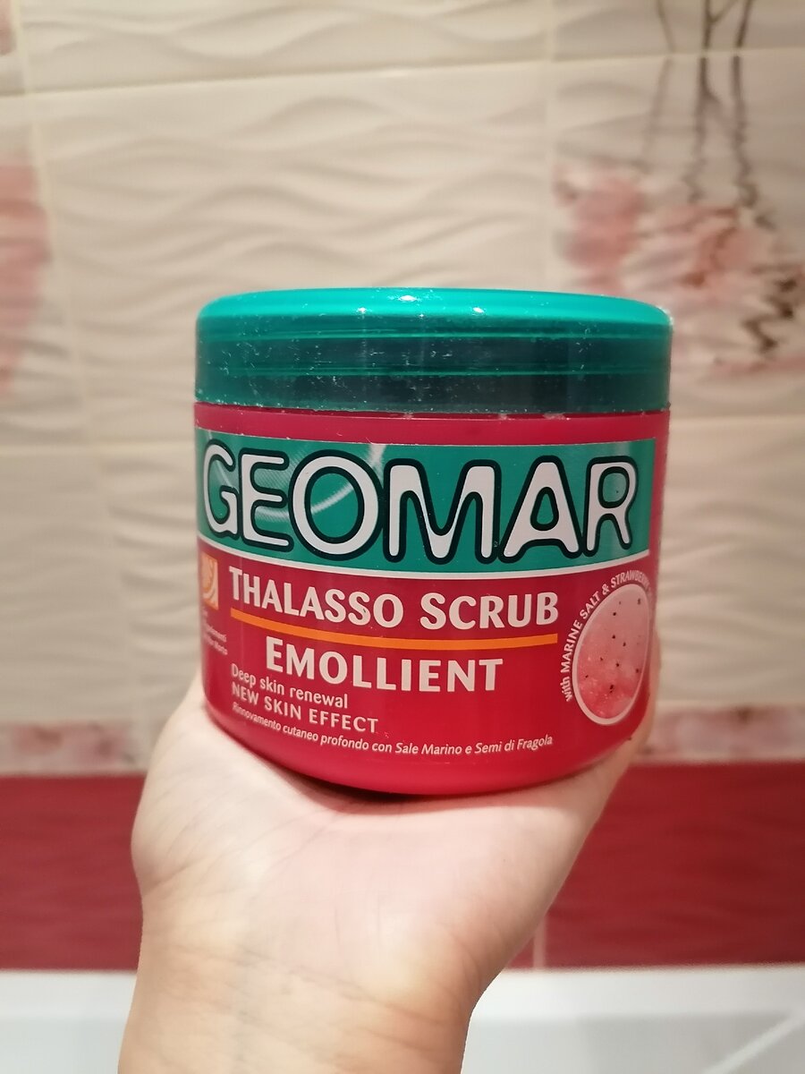 Недавно я зашла в магазин магнит косметик рядом с домом, увидела на полке этот скраб, называется он geomar и вспомнила, что о нем рассказывала какая то звезда из шоу бизнеса в своём инста и очень нахваливала. Восторженные отзывы помню, а от кого они были как то из головы вылетело, но это не настолько важно. Так вот приметная баночка стояла на полке так ещё и со скидкой в 50 процентов, стоила чуть больше 400 рублей, а баночка размера довольно внушительного 650 гр. Решила приобрести и попробовать. Было три разных варианта, я решила взять с гранулами клубники.