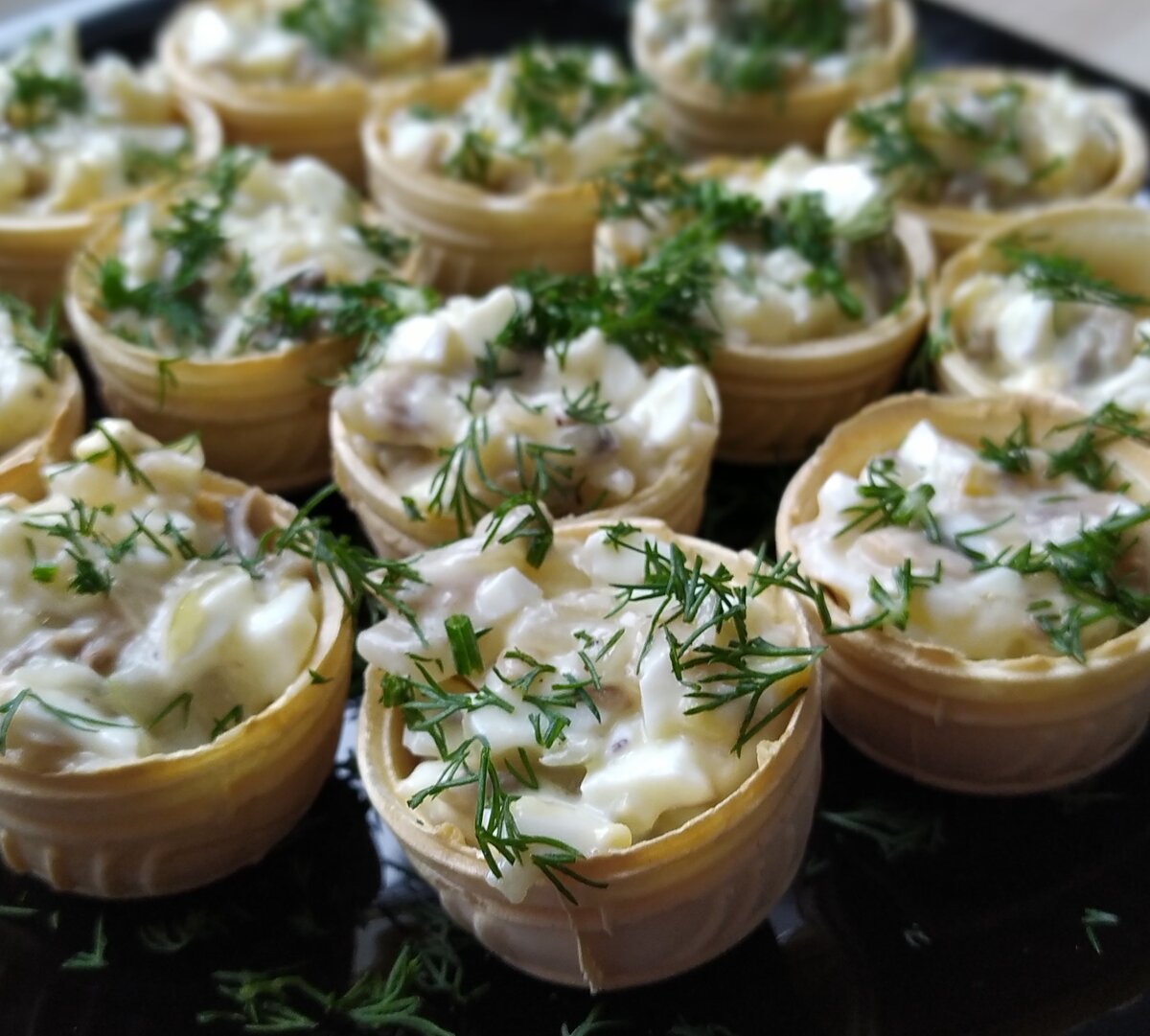 Скоро новый год, делюсь простой и вкусной закуской в тарталетках. Начинка из вареного яйца и жареных грибов очень вкусно сочетается, советую приготовить на праздничный стол.