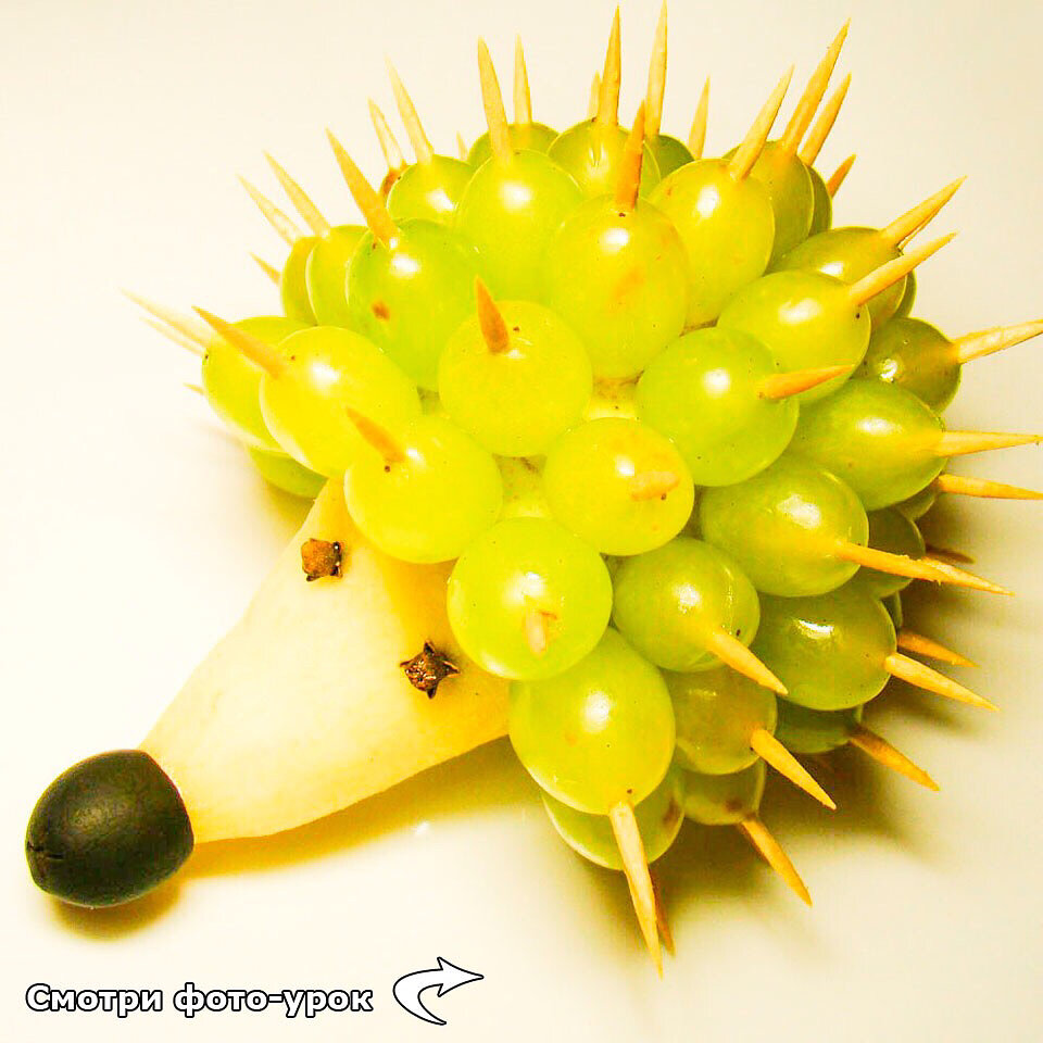 Шаг 3. Для создания иголок нанизывайте виноградинки на зубочистки как показано на фотографии.