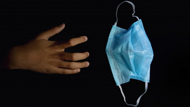 Эпидемиологи рекомендуют, прежде чем выкидывать маску в мусорную корзину, вложить ее в полиэтиленовый пакет и завязать. После, конечно же, вымыть руки.
