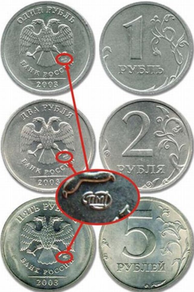 Монеты 1,2,5 рублей 2003 года выпуска. Изначально это был проект подарочного набора к 300 летию Санкт-Петербурга, но что то пошло не по плану и все напечатанные монеты остались лежать в хранилище монетного двора, а в 2006 году они попали в свободное обращение и теперь всплывают повсеместно. Стоимость таких монет от 20000 до 30000 рублей. Самая дорогая это один рубль. проверяйте свой кошельки