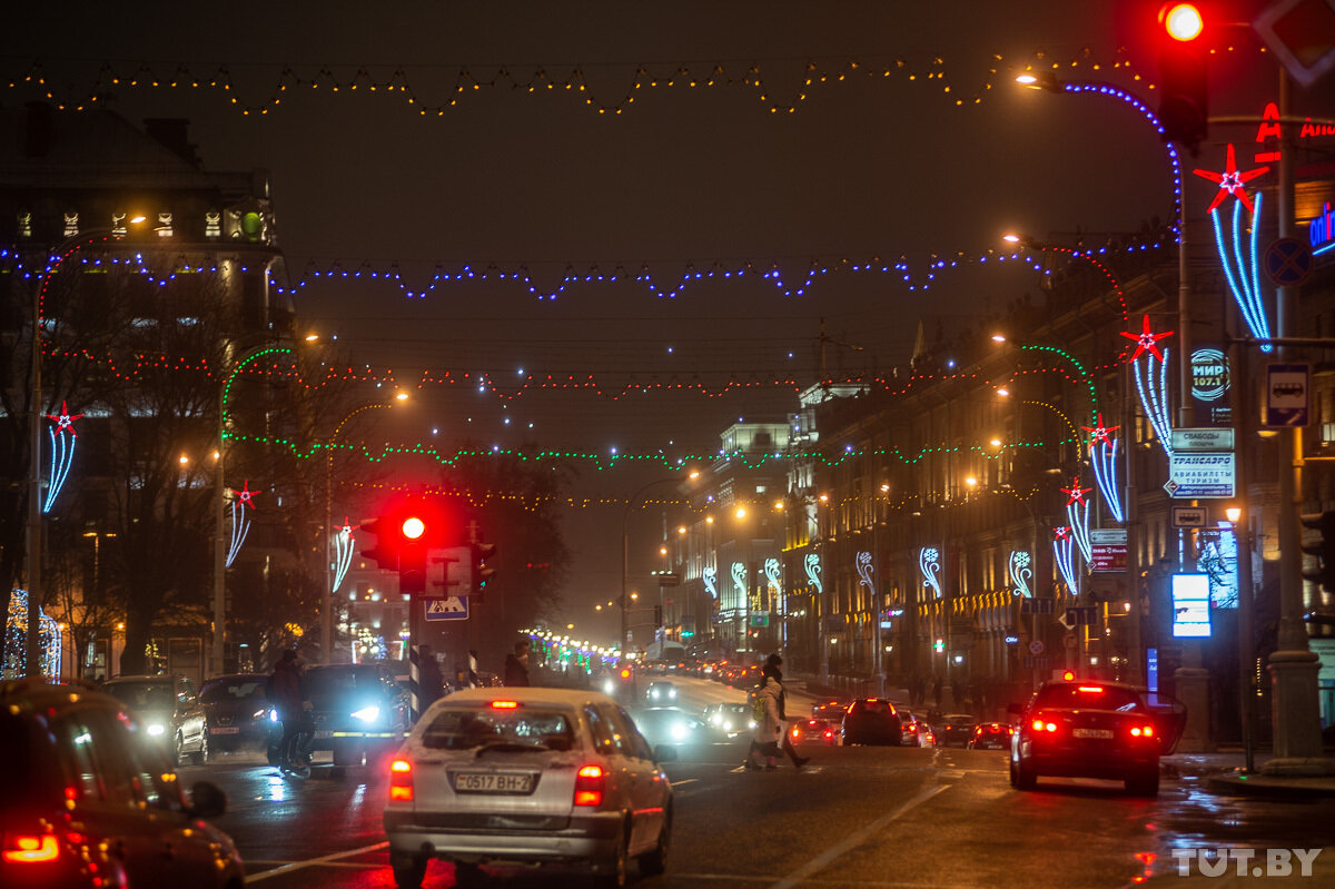 15 декабря в Минске включили новогоднюю иллюминацию. Показываем, как выглядит центр города в новогодних огнях.