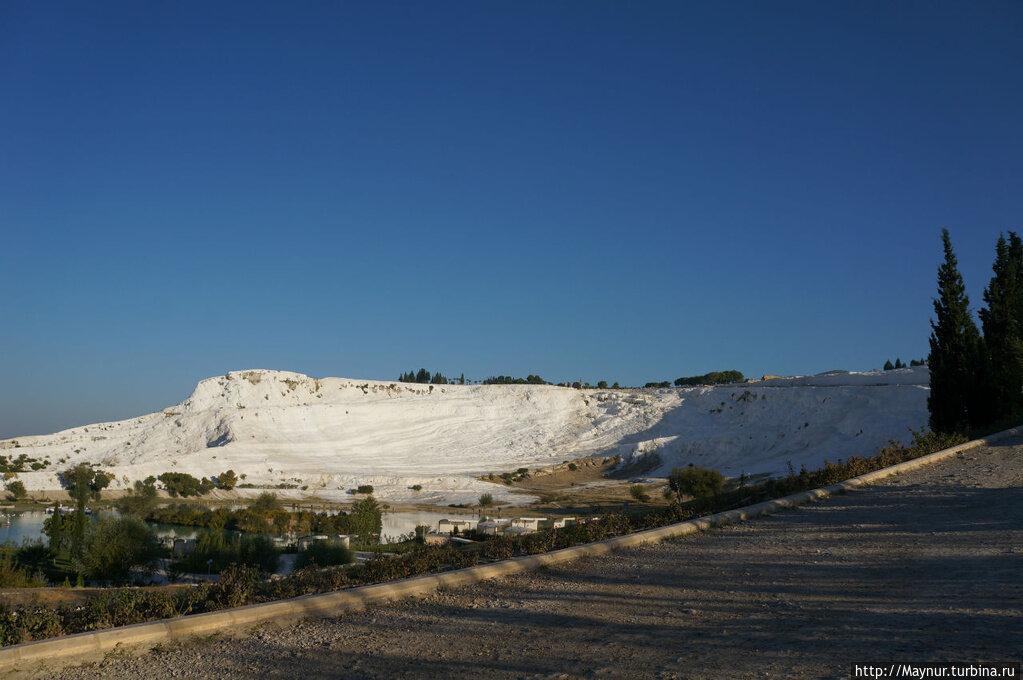 Перед вами две коробочки с хлопком комочки хлопка нужно отделить от оболочки и выложить из них большую гору. Добавить причудливые по форме и расположению чаши с чуть бирюзовой водой бегущие вниз кристальные ручейки террасы с водой и ... перед вами Паммукале — "Хлопковый замок ". Белоснежные скалы — это урожай хлопка, который собрали и