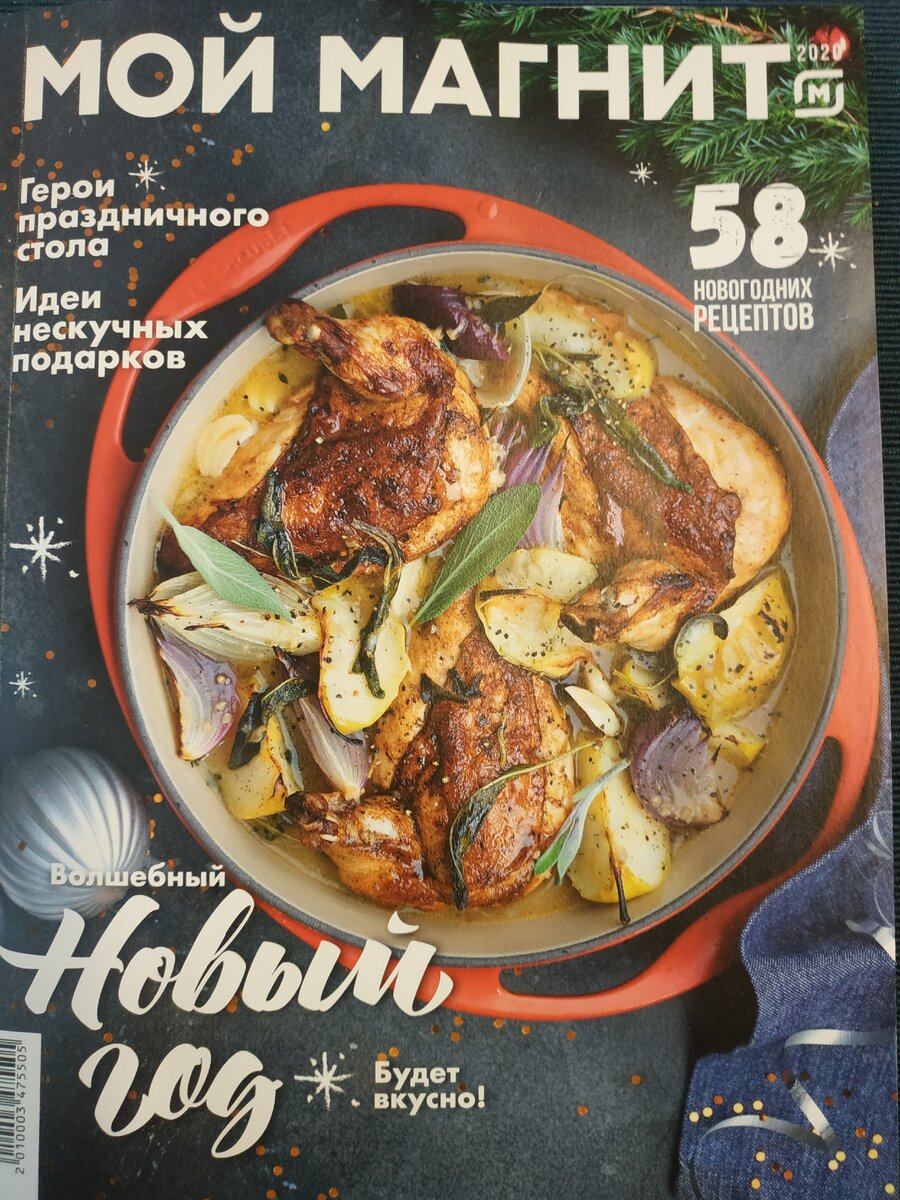 В Магните бываю нечасто. Рядом с домом другие магазины. Пару дней назад заехали за продуктами на неделю в Магнит. Других вариантов не было. Кассирша предложила взять журнал Магнита с новогодними предложениями. Я хотела было отказаться от макулатуры, но мой муж сгребает всё, что дают бесплатно. Так за ужином перед моим носом оказался этот журнальчик!