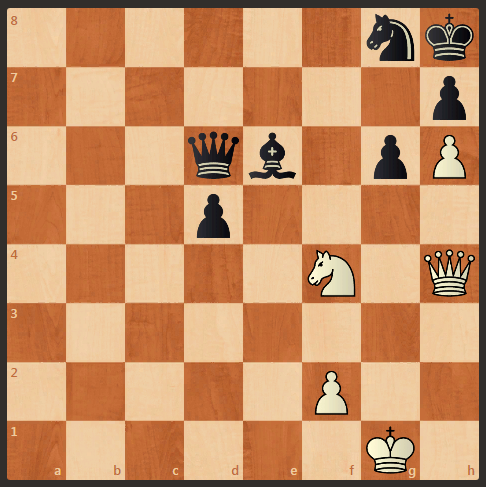 Очередная шахматная задача. У черных лишний слон и пешка. Положение белых кажется сложным. Черные планируют двигать пешку d5 и, за счет этого выиграть. Но ход белых, и они выигрывают. Подписывайтесь на канал и будут новые интересные задачи Решение смотрите далее 1. Белые бьют конем на g6, шах. 1. .................. черные обязаны брать пешкой на g6. 2. Белые дают шах ферзем на d4, черные вынуждены отдать ферзя, затем коня. В итоге белые ставят мат ферзем на g7. Другую шахматную задачу смотрите тут>>>>>