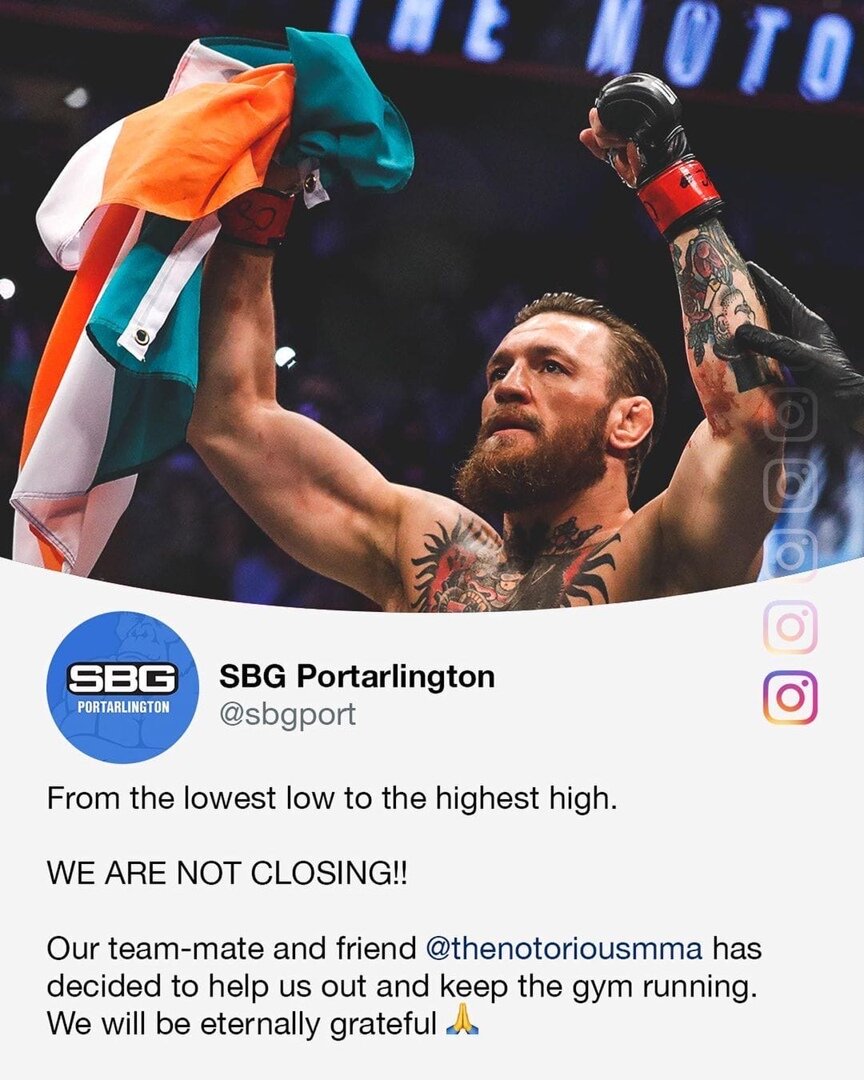 Узнав о проблеме, к ее решению подключилась ирландская суперзвезда UFC Конор Макгрегор, который связался с Малпетером, своим давним партнером по тренировкам в SBG Ireland, сказав тому не закрыть зал. Вскоре Конор решил все его финансовые проблемы на пару лет вперед.