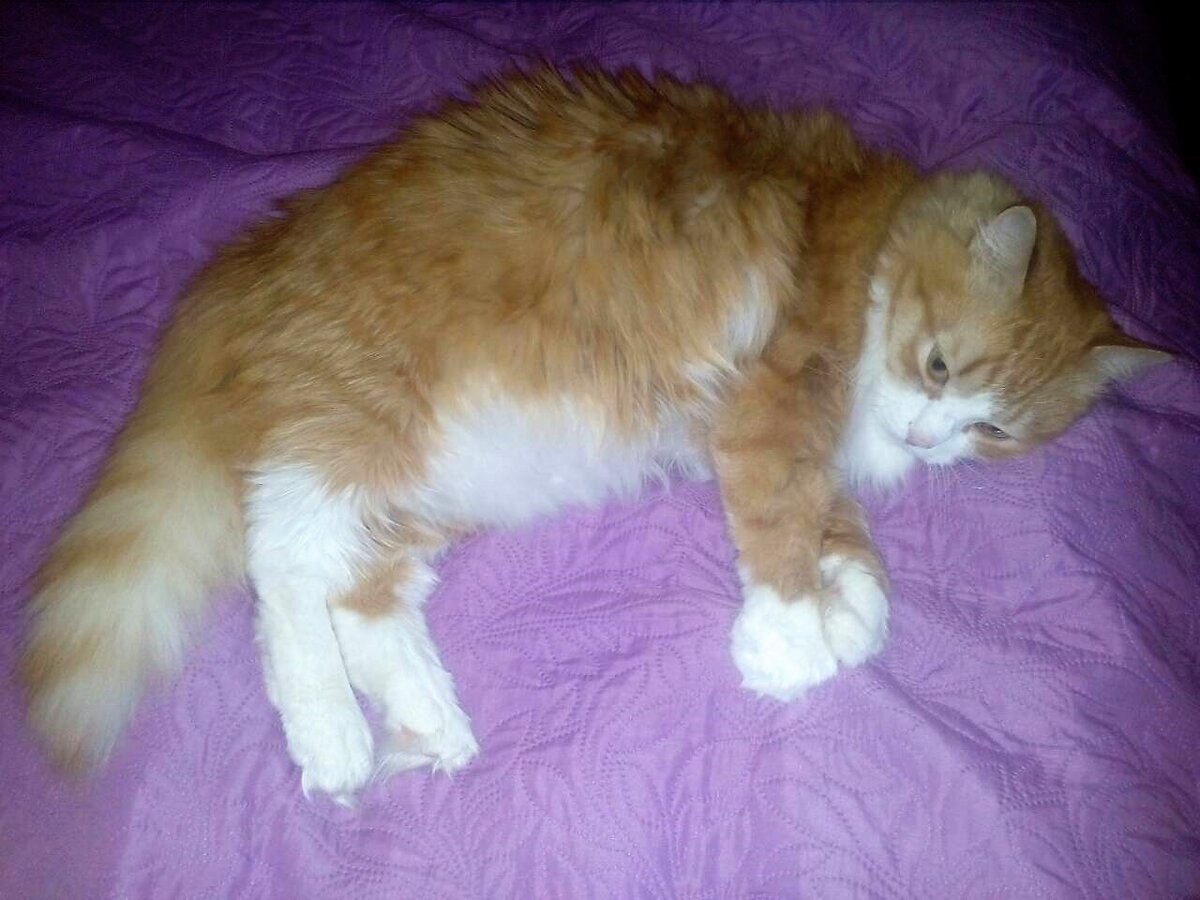 У нас рыжий кот Тимофей-часть нашей семьи. Он очень много ест, так много, что я удивляюсь куда ему влезает, человек наелся бы. Соответственно, он и в туалет ходит ооочень часто. Вот наш красавчик, на фото не видно какой он крупный.
