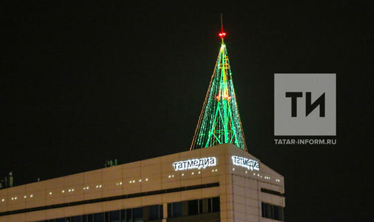 На крыше здания «Татмедиа» появилась новогодняя елка. Она считается самой высотной елкой в Европе.