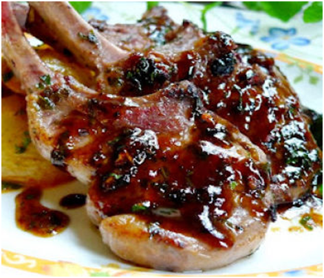 4. После того, как соус полностью приготовился, выключаем плиту. В красивую тарелку для подачи укладываем несколько кусочков баранины на косточке и заливаем соусом. Мясо подается в горячем виде вместе с гарниром.