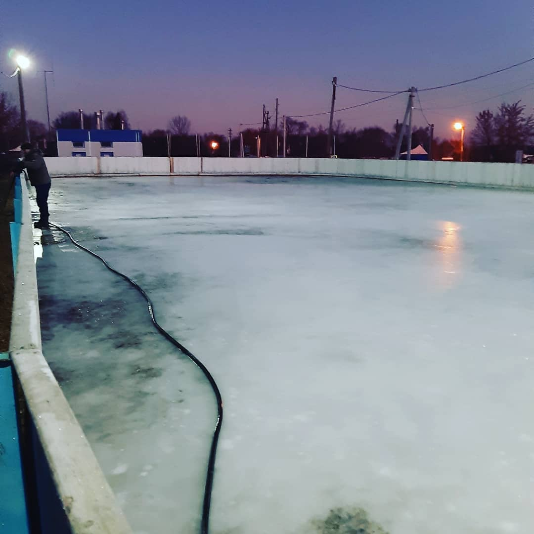 В Сенцово в плановом режиме проводятся работы по заливке хоккейной площадки.