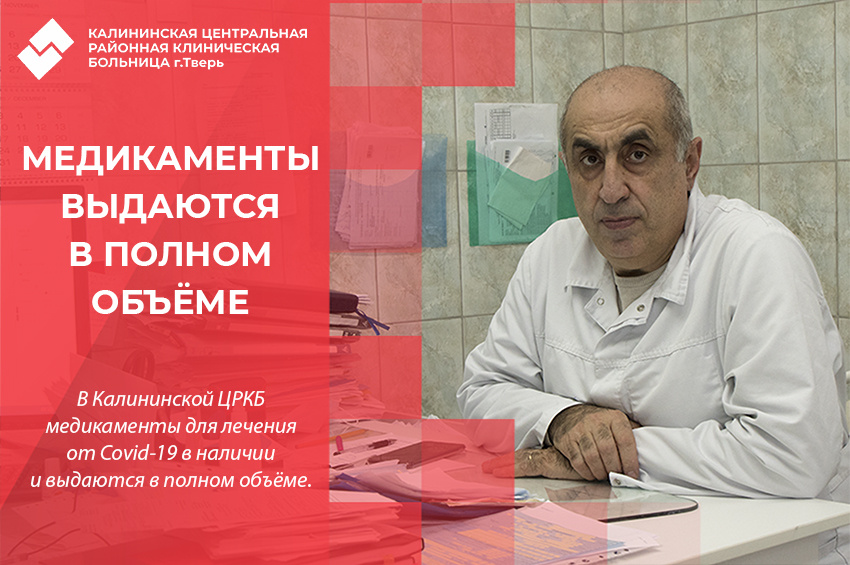 В Калининской ЦРКБ медикаменты для лечения от Covid-19 в наличии и выдаются в полном объёме.