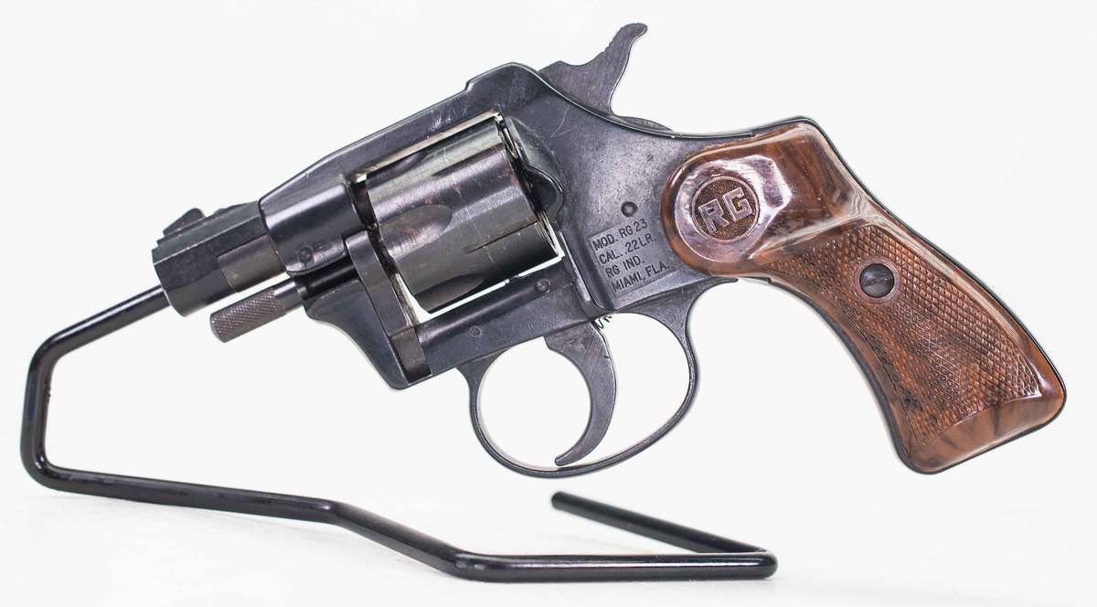 Итак, что есть RG23? Простенький револьвер со стволом длиной 45 или 86 мм, шестизарядным откидным барабаном двадцать второго калибра, собранный в ЦАМовой рамке настолько небрежно, что можно было встретить револьверы с откровенно несоосными стволу каморами даже "с новья", чего уж говорить об уже успевших пострелять (револьверы выдерживали максимум 1000 настрела, и то патронами "полегче" - первые модели в этой линейке вообще констркутивно ограничивались использованием только патронов .22 Short!).