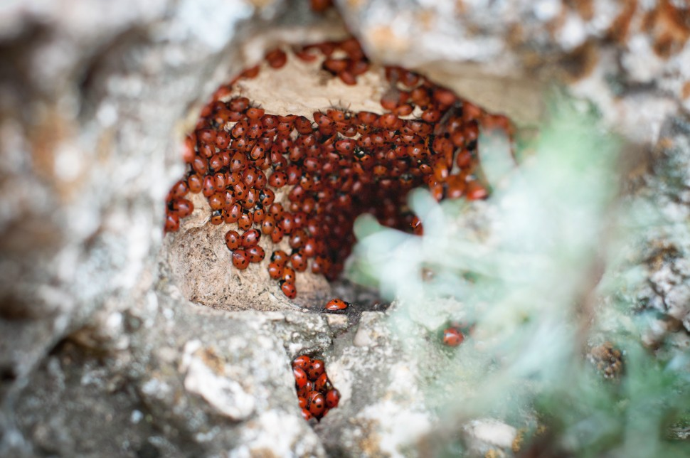 Божьи коровки - жуки, которые впадают в зимнюю спячку. Они могут зимовать под корой деревьев, под подстилкой из листьев, под камнями или даже внутри домов. Не пугайтесь, если вы видите много божьих коровок у себя дома зимой, это признак того, что ваш дом тёплый.