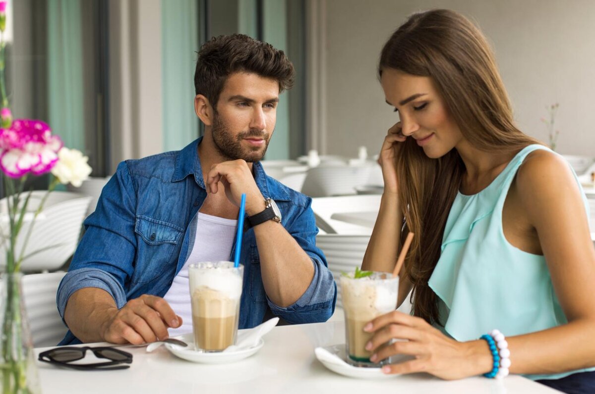 В такие моменты мужчина ощущает непонятное чувство. Вроде бы, ему хочется подсесть ещё поближе, но пока что между вами есть определённая грань, которую переступать нельзя. В такие моменты мужчина начинает немного нервничать и стремится чем-то занять руки. Он постоянно трогает телефон, салфетки, любые предметы, до которых способен дотянуться.