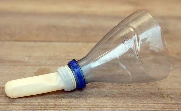 Берем ножницы, и отрезаем горлышко бутылки. Далее берем напалечник (шарик), и надеваем его на узкое горлышко бутылки. Осталось совсем чуть-чуть. Берем изоленту, и закрепляем наш напалечник на горлышке.