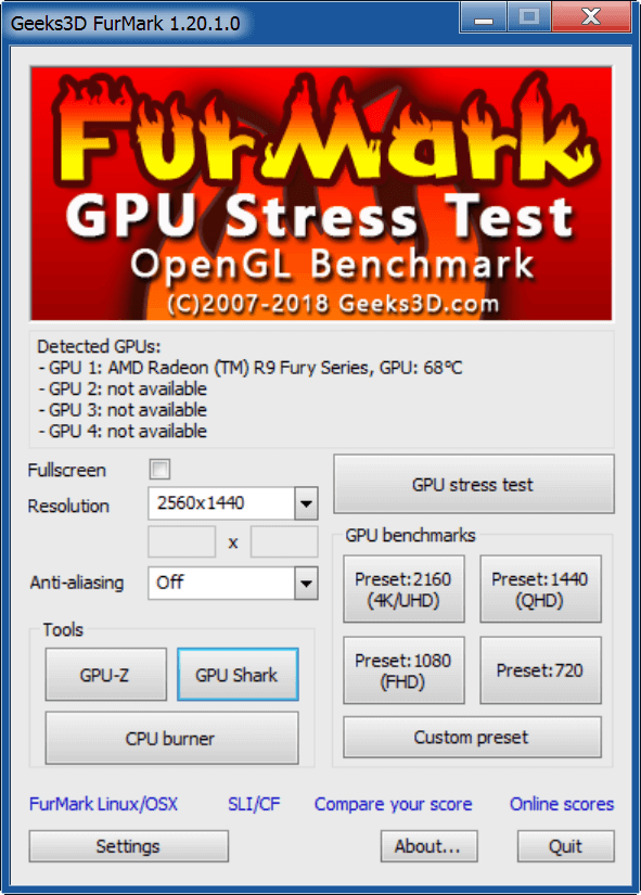 Скачать FurMark, можно пройдя по следующей ссылке https://geeks3d.com/furmark/.