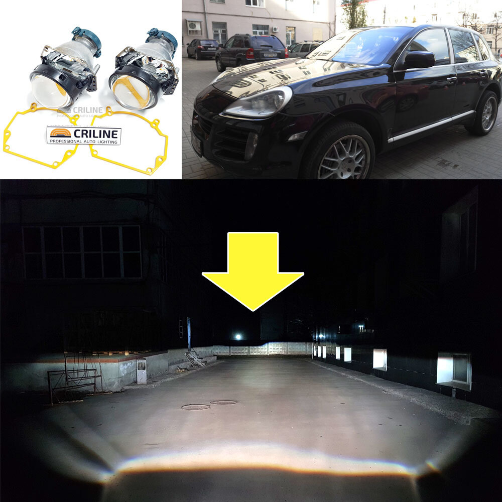 По этой причине единственная возможность вернуть первоначальную яркость Порше каен 9па - установка новых линз Хелла 3 дюйма.