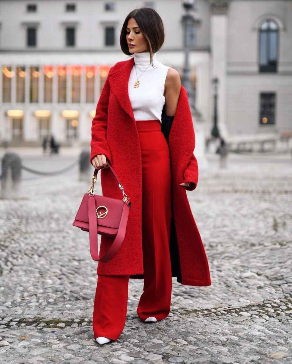 Наиболее женственно, изысканно и элегантно смотрится наряд, когда белая обувь сочетается с брюками в классическом стиле. Удачно такой образ будет гармонировать с интересным пальто любой расцветки. Ведь считается, что белый оттенок сочетаются с любым другим цветом в одежде.
